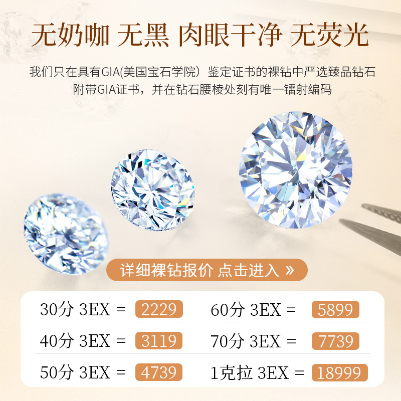 证书双证保证。一克拉以下心形、公主方等异形钻均可提供国检证书保证。